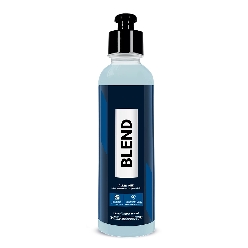 Blend All In One is a one-step polish with integrated protection, combining the warm gloss of carnauba wax with SiO₂-based ceramic technology to enhance durability and water repellency on the paint surface.