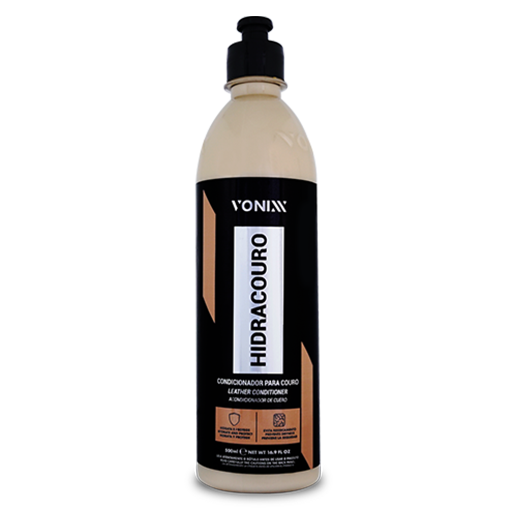 Vonixx Hidracouro is a premium leather conditioner and protector specially formulated to hydrate, nourish and preserve automotive leather surfaces. Its lanolin-based formula penetrates deep into the leather fibres, preventing dryness, cracking and premature ageing while restoring suppleness and a like-new appearance.