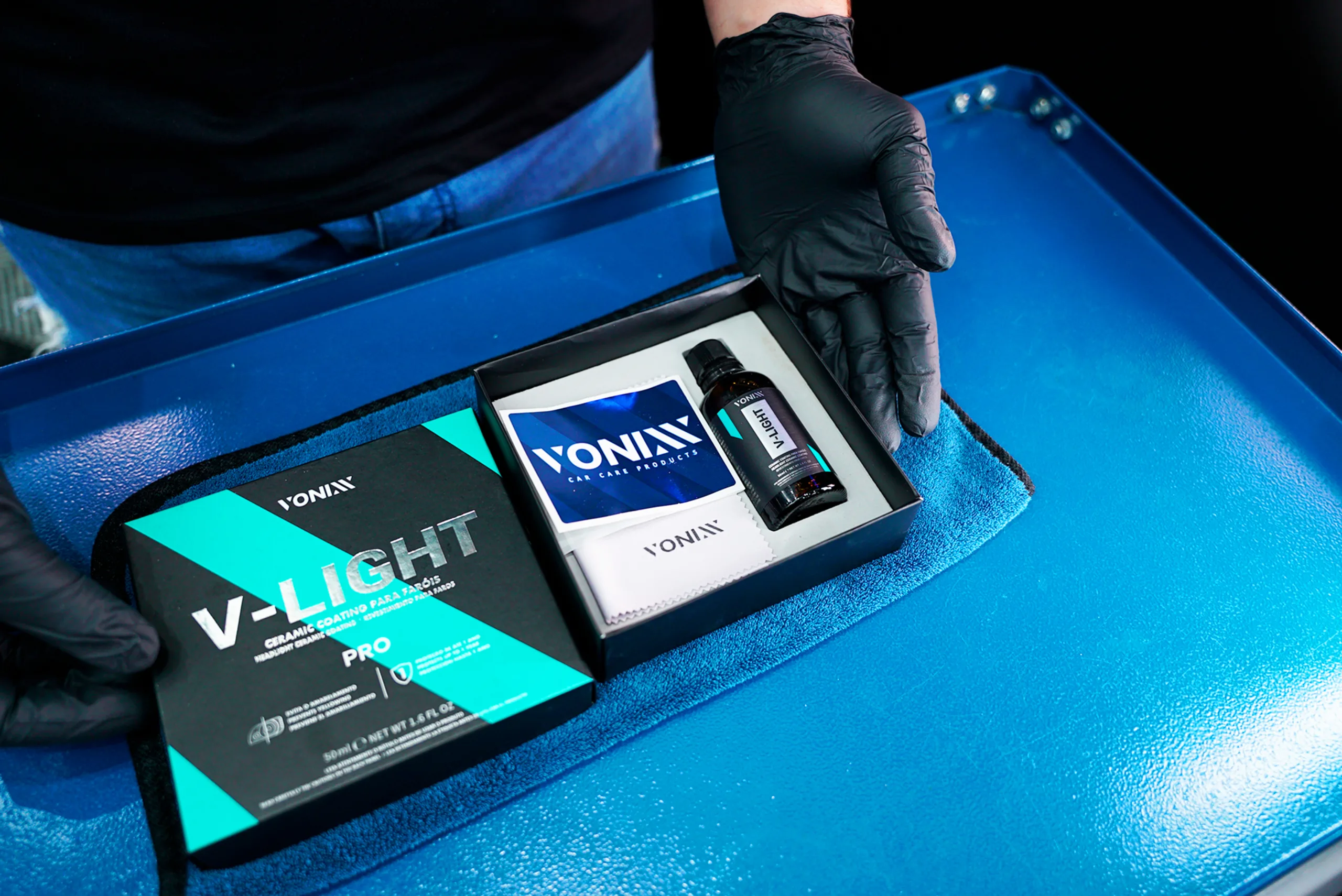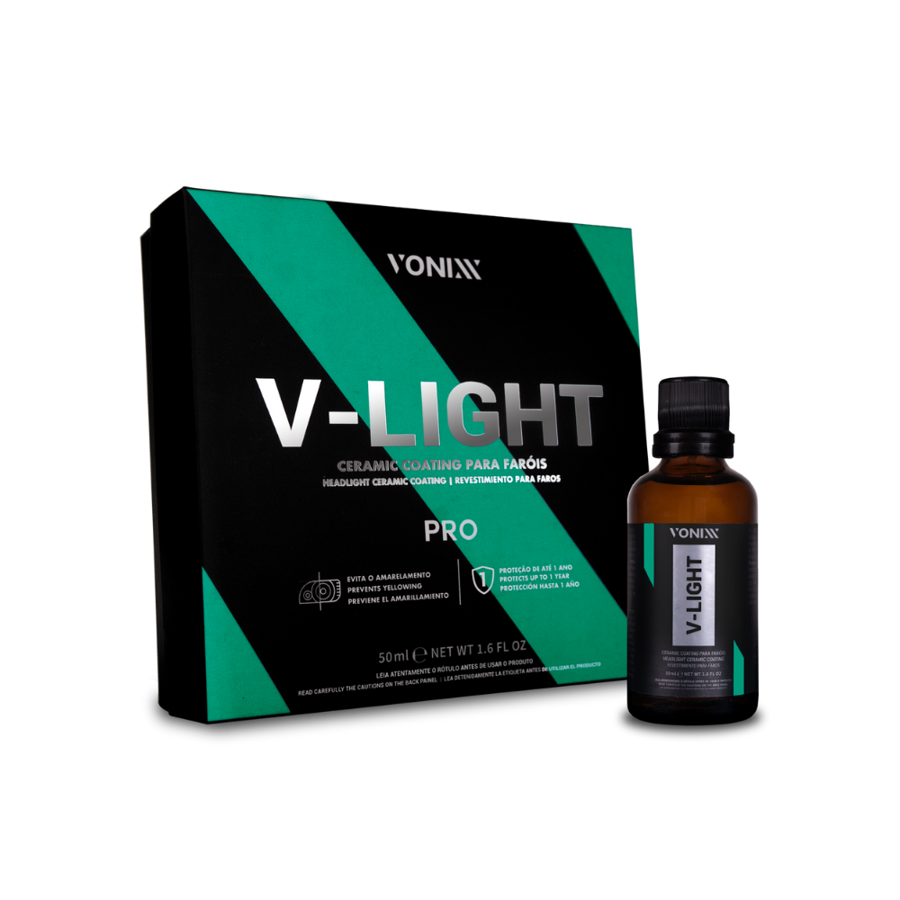 V-Light Pro is a SiO₂ ceramic coating designed to restore and protect headlights and automotive glass with long-lasting clarity and UV resistance. It prevents yellowing, enhances transparency and delivers up to 12 months of durable protection, keeping headlights looking new and improving visibility. With exceptional yield and professional-grade performance, V-Light Pro is the ultimate solution for lasting headlight restoration and protection.